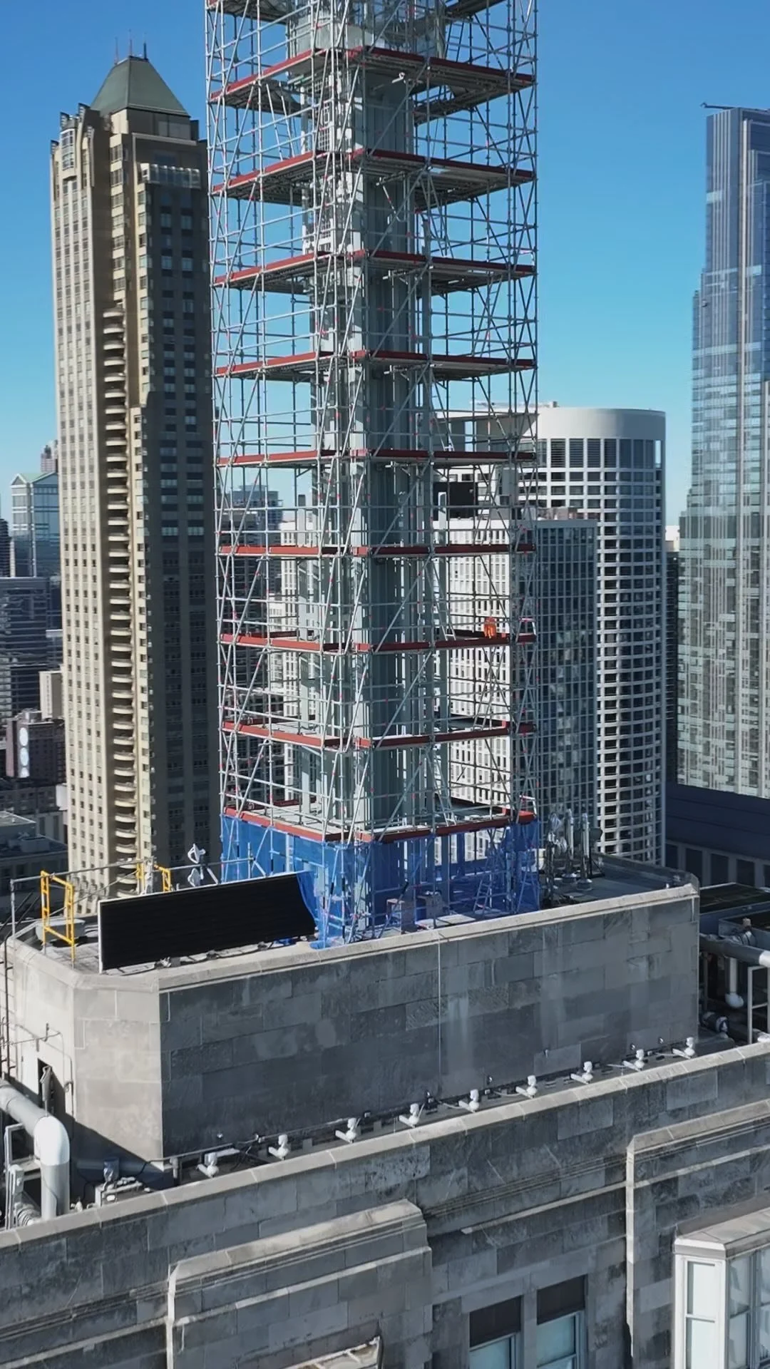 View fullsize 300,000+ LBS OF ENGINEERED LAYHER SCAFFOLDING——All for the exterior restoration of the University of Chicago’s renowned, Rockefeller Memorial Chapel. @layherna